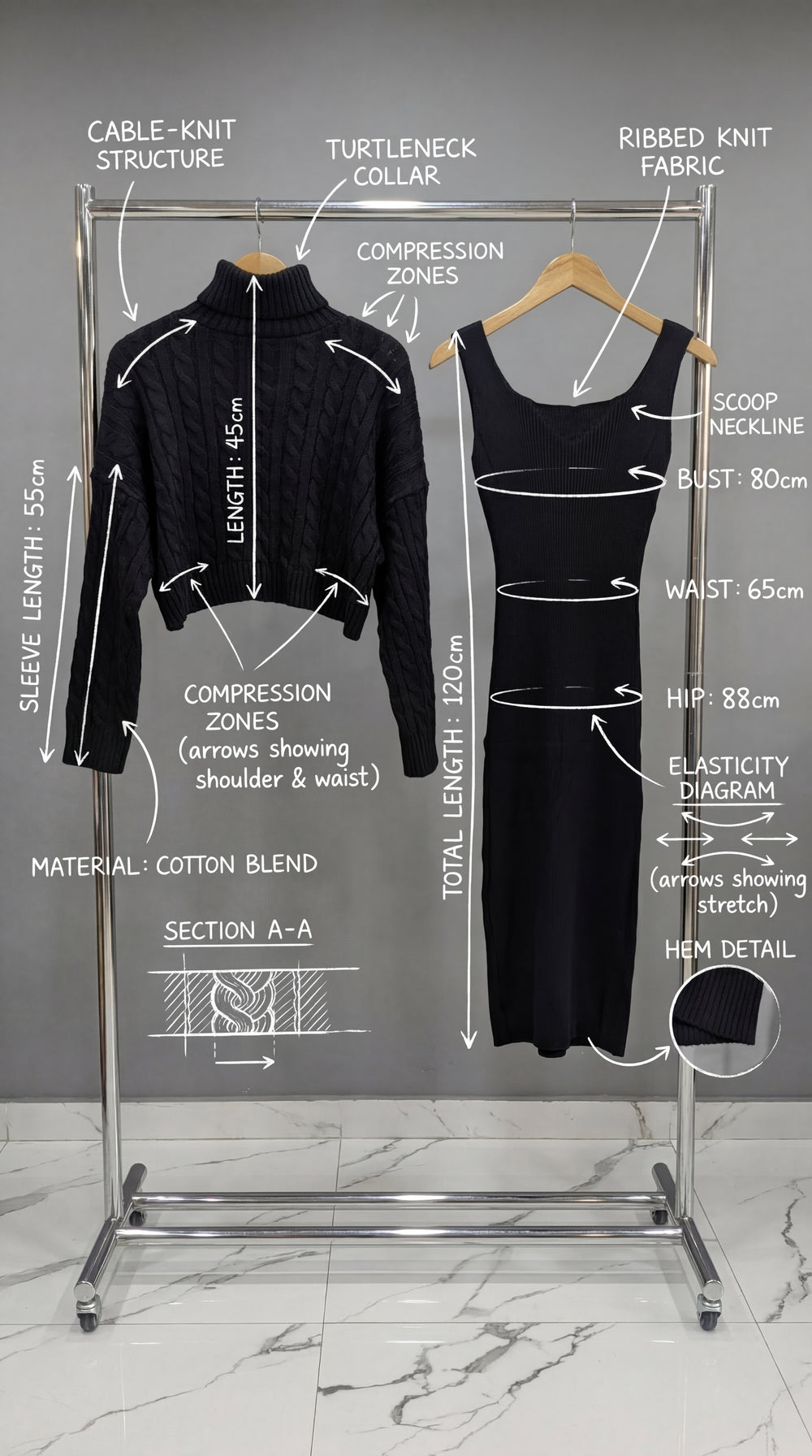 Onyx Ribbed Duo Black Body Cone with Crop Top Elevate your wardrobe with this sophisticated two-piece set featuring a sleek black body cone paired with a contemporary crop top. The ribbed texture adds visual depth and dimension, creating a flattering silhouette that transitions seamlessly from casual to elevated occasions. **Material & Quality** Crafted from premium, durable fabric that maintains its shape and color through regular wear. The ribbed construction provides stretch and recovery, ensuring comfort without compromising structure. High-quality stitching throughout guarantees longevity and resistance to wear. **Care Instructions** Machine wash in cold water with similar colors. Use gentle cycle to preserve the ribbed texture and fabric integrity. Avoid bleach and fabric softeners. Lay flat to dry or hang to prevent stretching. Iron on low heat if needed. Do not tumble dry for best results. This versatile set delivers both style and substance, making it an essential addition to any modern wardrobe.